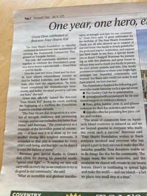 Tick Event photos and club recognition in newspaper from Four Hearts Playground Foundation.